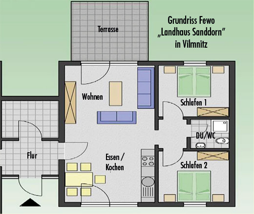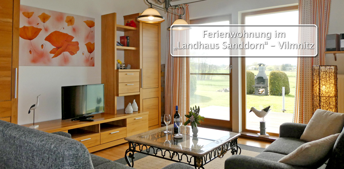 Die Ferienwohnung im gemütlich und hochwertig eingerichteten Landhaus Sanddorn liegt auf der Insel Rügen am Rande des Örtchens Vilmnitz. Die zwei Haushälften sind über den Hausflur verbunden. Über das grosse Grundstück haben Sie einen herrlichen Blick ins Biosphärenreservat Südost-Rügen. Der Jachthafen Lauterbach, sowie der Naturstrand des Boddens sind ca. 1 km entfernt. Die kulturreiche Stadt Putbus erreichen Sie nach 2 km. Die wunderschönen Ostseebäder Binz, Sellin und Baabe sowie die Stadt Bergen sind über die deutsche Alleenstraße mit dem Auto in ca. 15 Minuten erreichbar. Ein Urlaub in der Fewo im Landhaus Sanddorn auf Rügen heißt aktiv ausspannen mit Radfahren, Wandern, Baden, Golfen oder einfach nur nichts tun und still genießen.